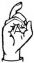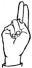 На ћирилици написано ШАЛЕ БИОЧАНИН састоји се из 12 слова [?]. Исписано ћириличном једноручном азбуком за глувонеме: